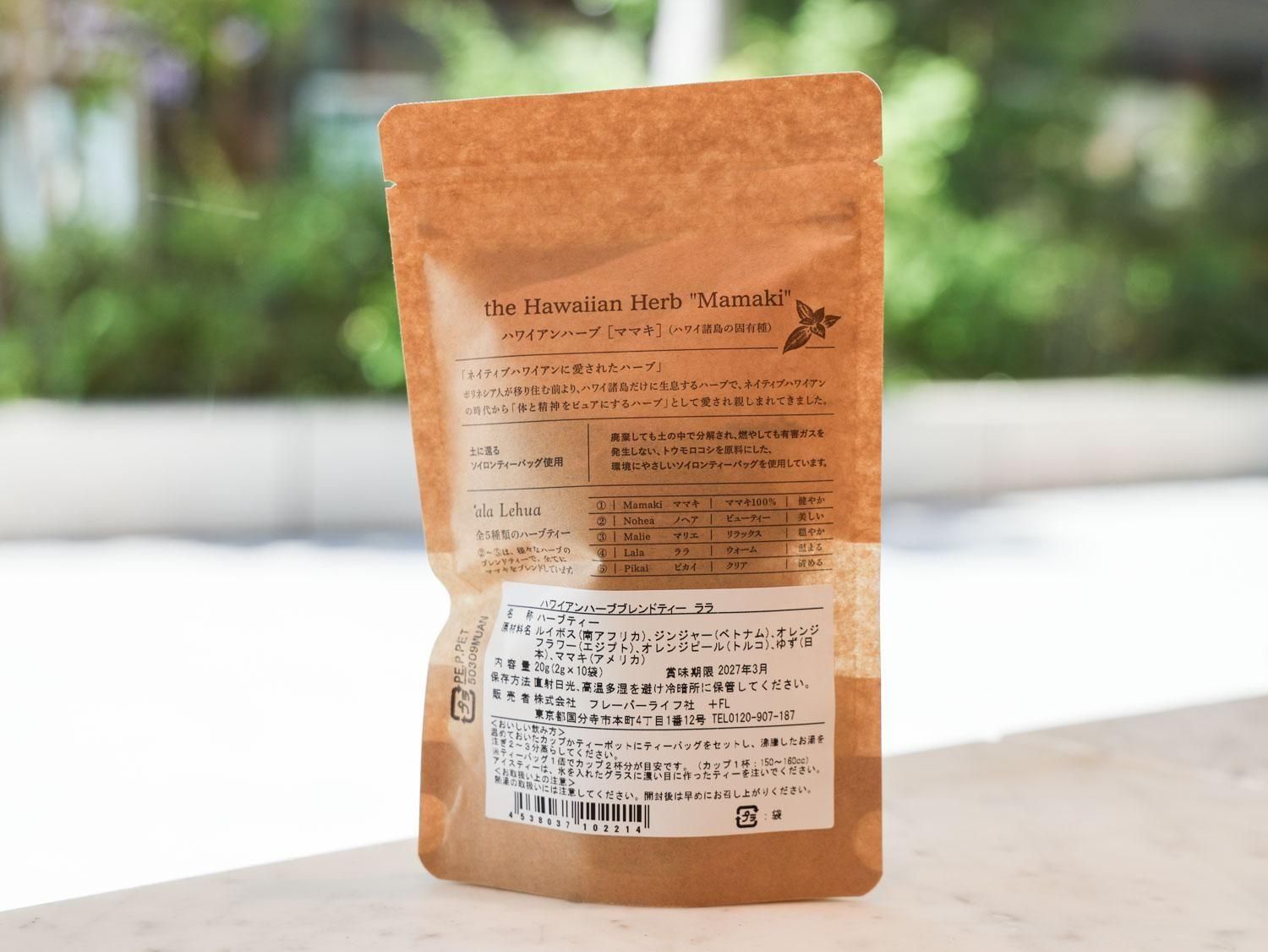 とても貴重なハワイ原産のハーブ「ママキ」と世界各地のハーブをハーブティーのスペシャリストがブレンドした、どなたにも飲みやすくまろやかな味わいのブレンドです。南アフリカの先住民から「奇跡のお茶」として親しまれてきたルイボスティーをベースに、ジンジャーや柚子などを配合。 心や身体を温かな気分にしてくれるほんのりとスパイシーで紅茶のような香りと味わいが特徴です。