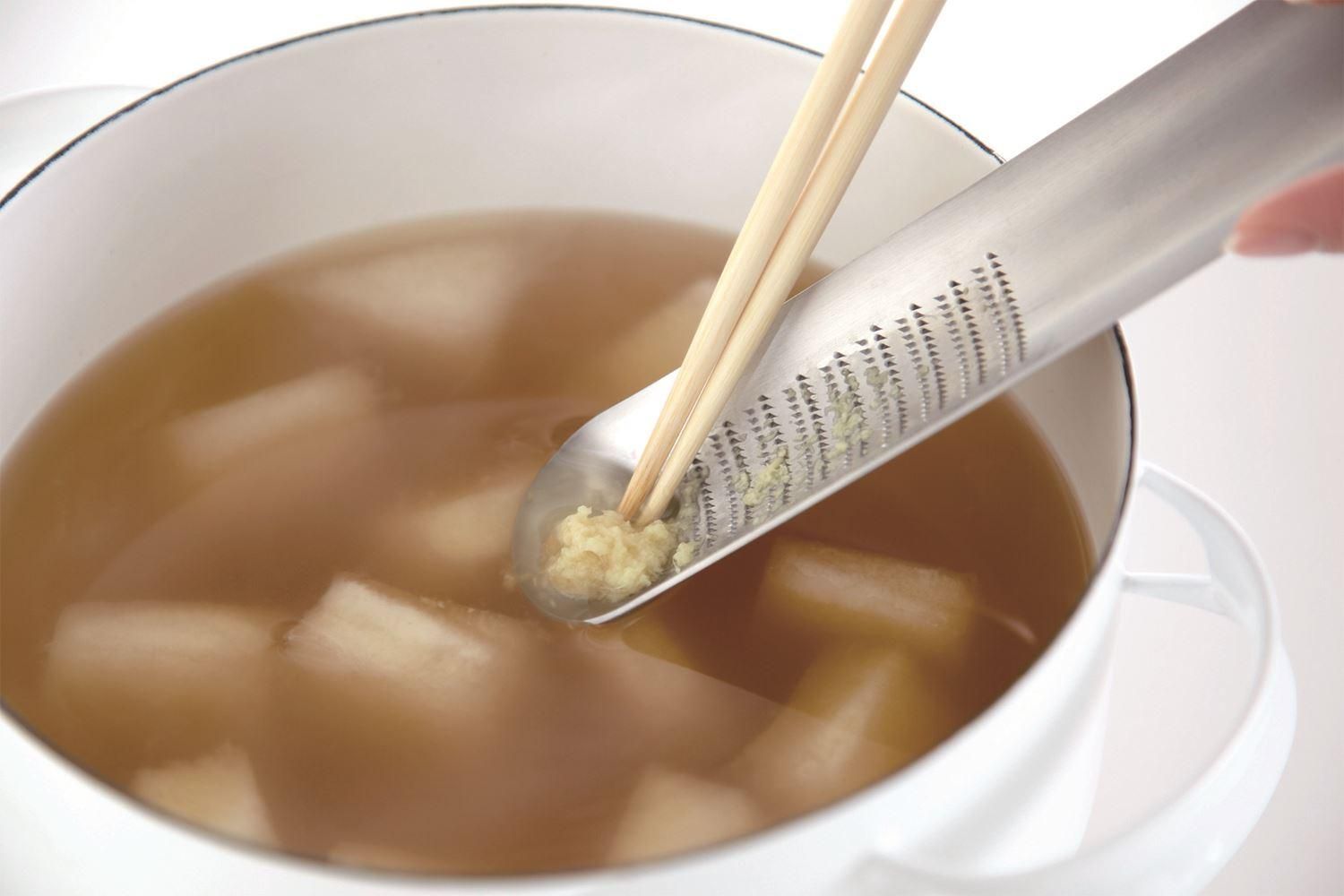ダイニングにも映える、美しいフォルムのおろし金です。