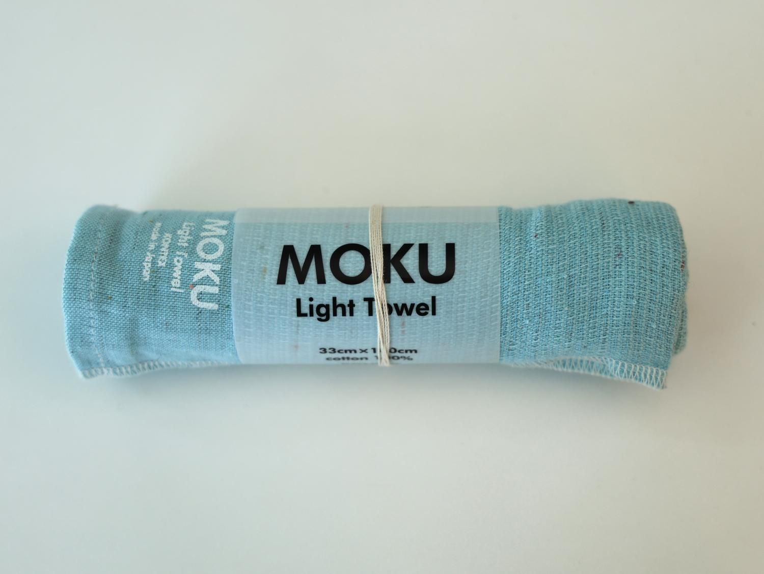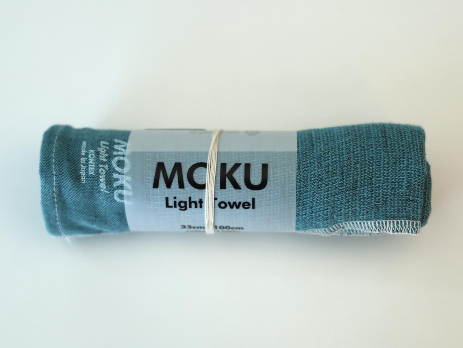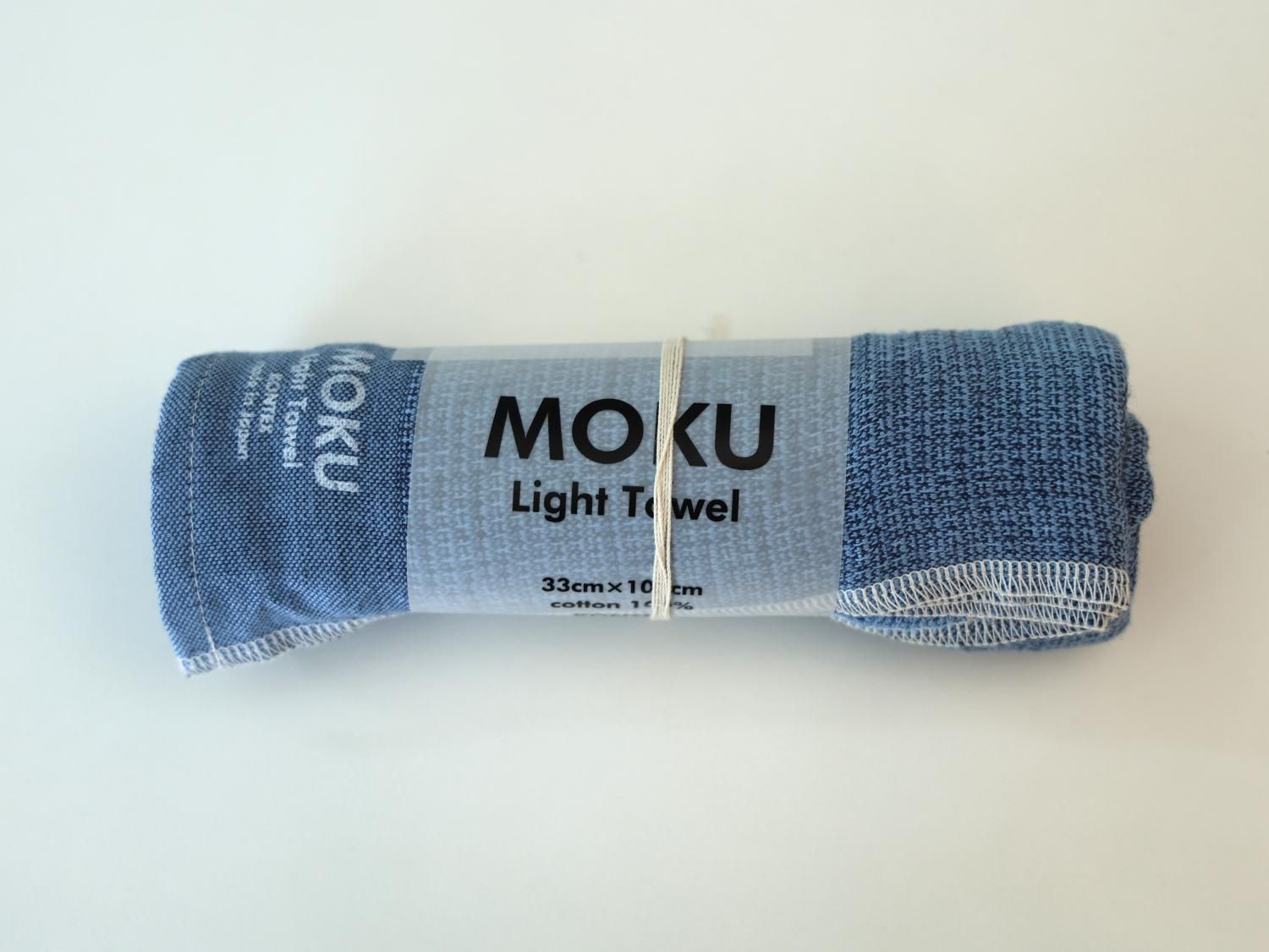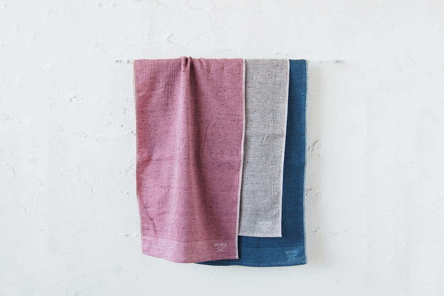 人気のMサイズはわずか50g。さらに通常のタオルより1.5倍細い糸を使用しているため、とても薄手でコンパクトに収まります。通常のフェイスタオルは大体が80cmほどですが、MOKUは手ぬぐいの長さに近い100cmに設定されており、この20�が思いのほか便利なものです。普通の厚さのタオルが100cmあるとコンパクトさや水ギレの良さが失われてしまいますが、MOKUの薄手な生地感や使用シーンには、この長さが絶妙に良いといえます。
