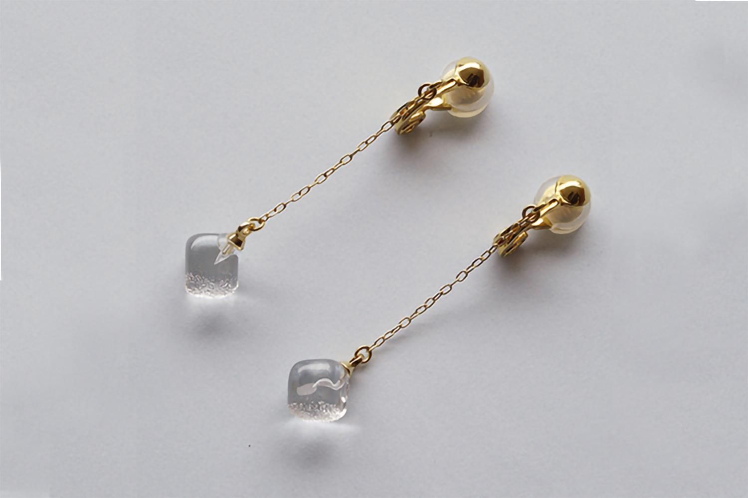 キューブの一面に細かいディテールが施してあります。溶けだした様な小さなキューブが、耳元で輝きます。