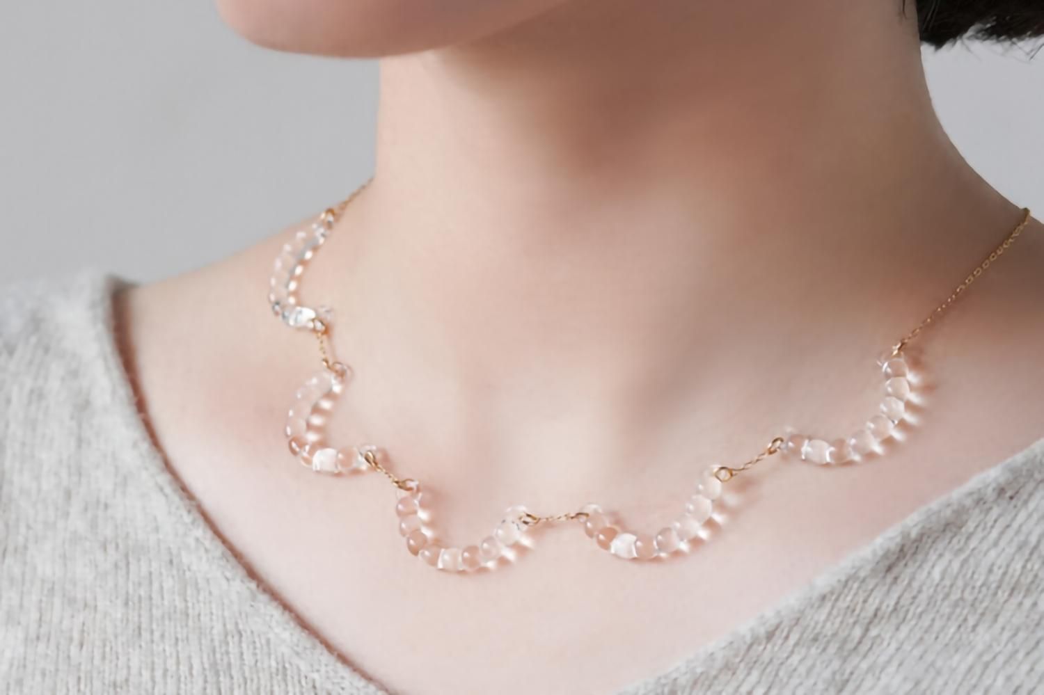 1921年創業の耐熱ガラスメーカーHARIOが職人の手仕事技術の継承のためにつくりはじめたガラスのアクセサリー。東京・日本橋と全国6箇所の工房で、ひとつひとつ手作りでつくっています。もし割れてしまった場合はお直しもできます。