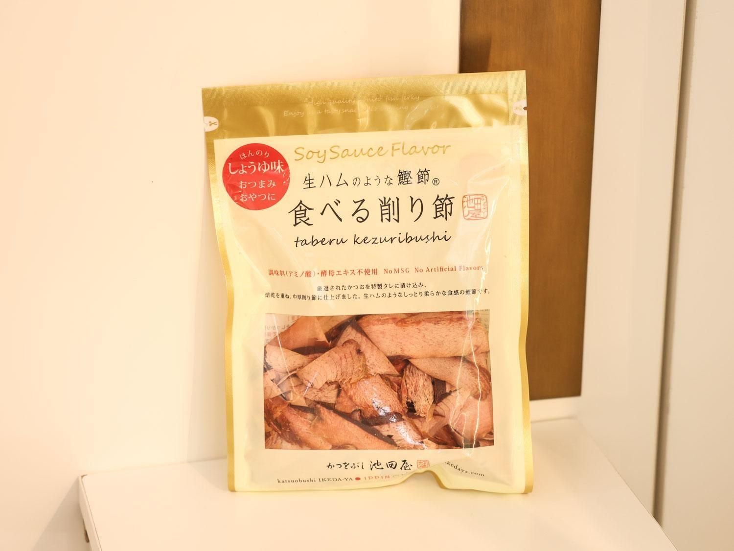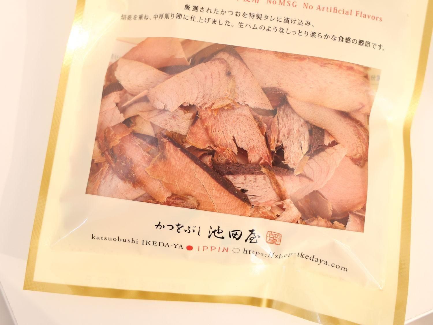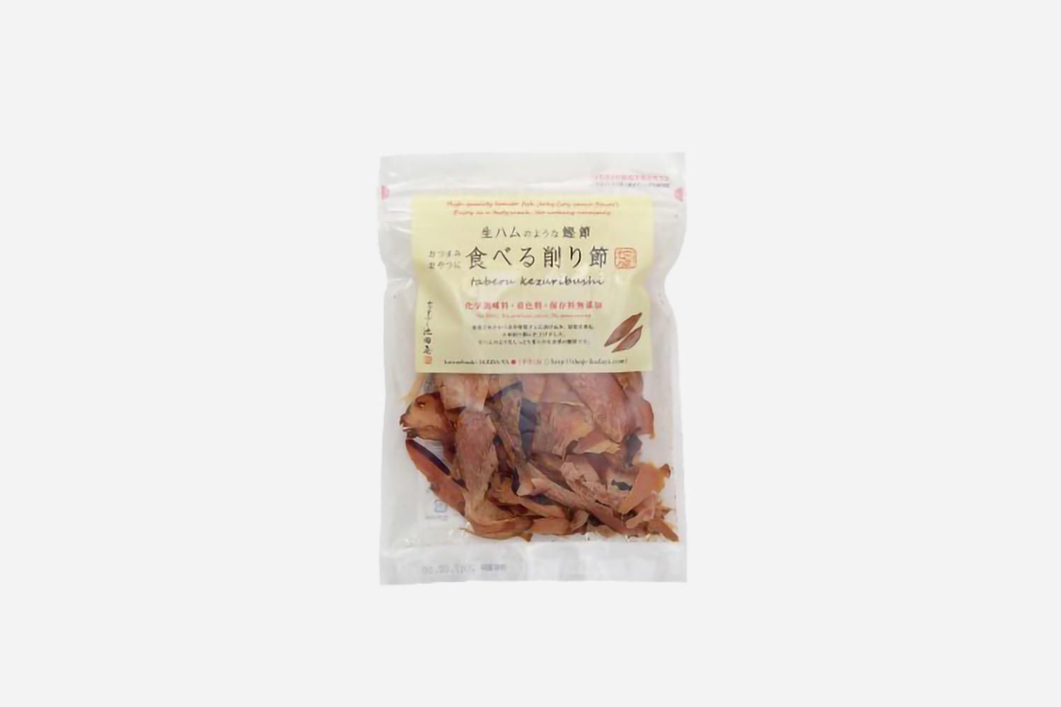 厳選されたかつおを特製タレに漬け込み、培乾を重ね中厚削り節に仕上げました。
