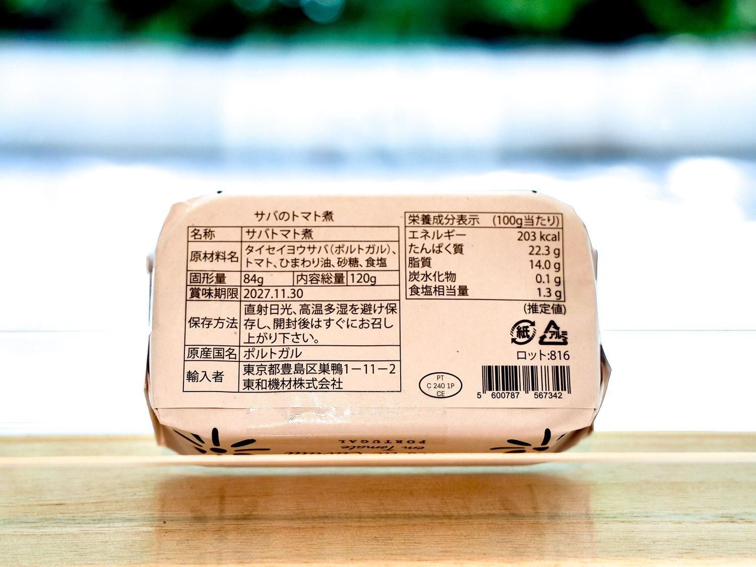 原材料名:サバ、トマト、ひまわり油、砂糖、食塩