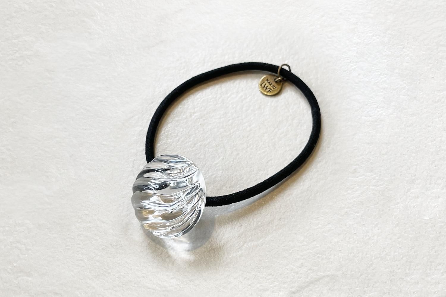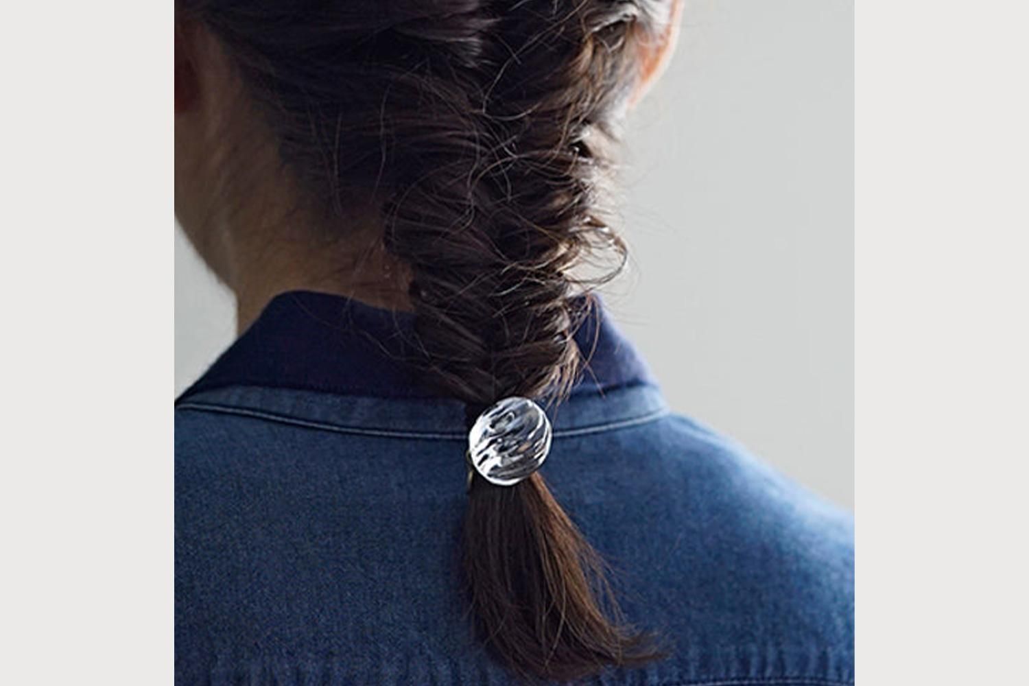 ウェーブビーズのガラスが、波紋のように輝くヘアゴムがスタイルのアクセントになります。