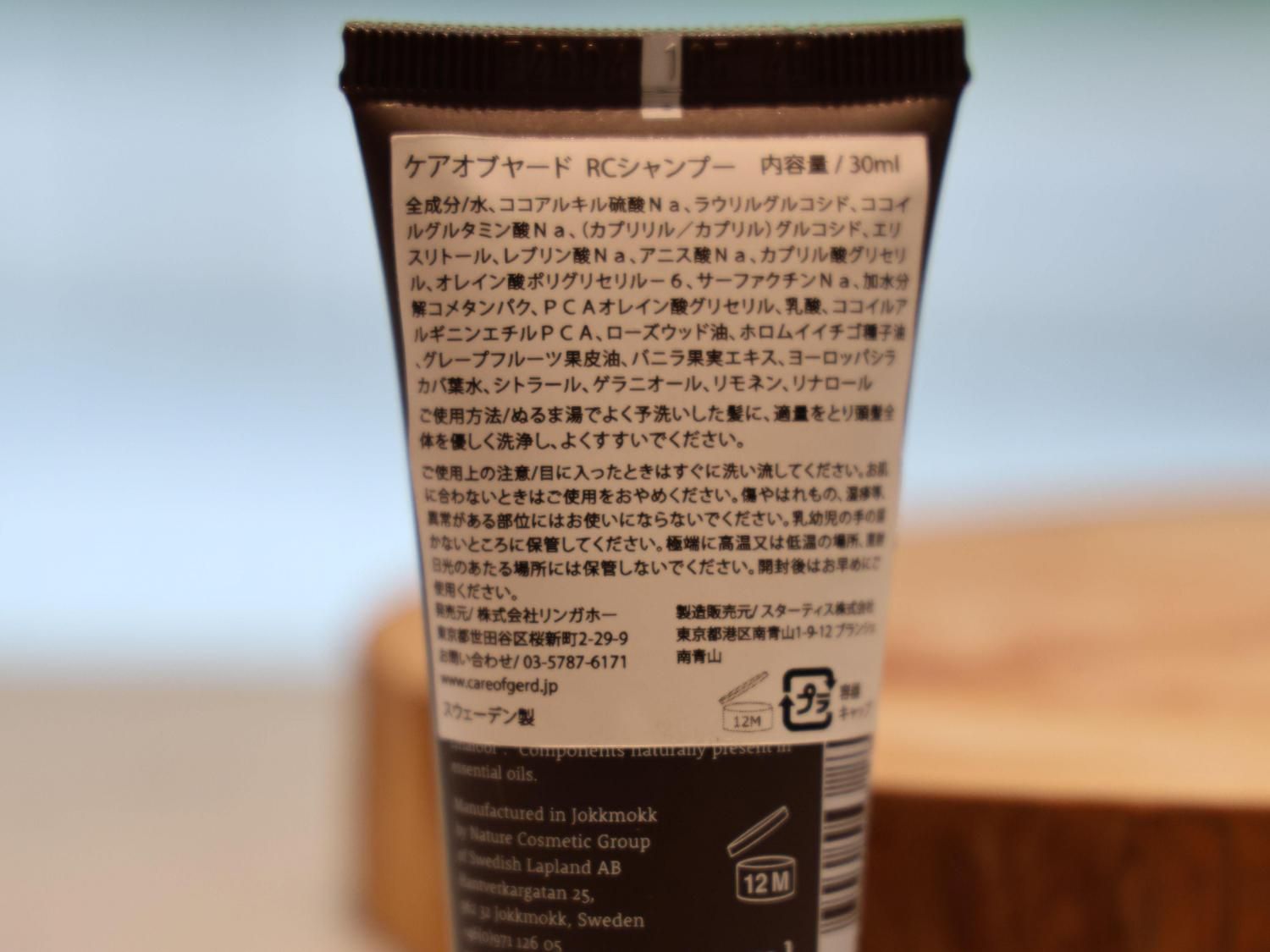 全成分:水、ココアルキル硫酸Na、ラウリルグルコシド、ココイルグルタミン酸Na、(カプリリル/カプリル)グルコシド、エリスリトール、レブリン酸Na、アニス酸Na、カプリル酸 グリセリル、オレイン酸ポリグリセリル−6、サーファクチンNa、加水分解コメタンパク、PCAオレイン酸グリセリル、乳酸、ココイルアルギニンエチルPCA、ローズウッド油、ホロムイイチゴ種子油、グレープフルーツ果皮油、バニラ果実エキス、ヨーロッパシラカバ葉水、シトラール、ゲラニオール、リモネン、リナロール