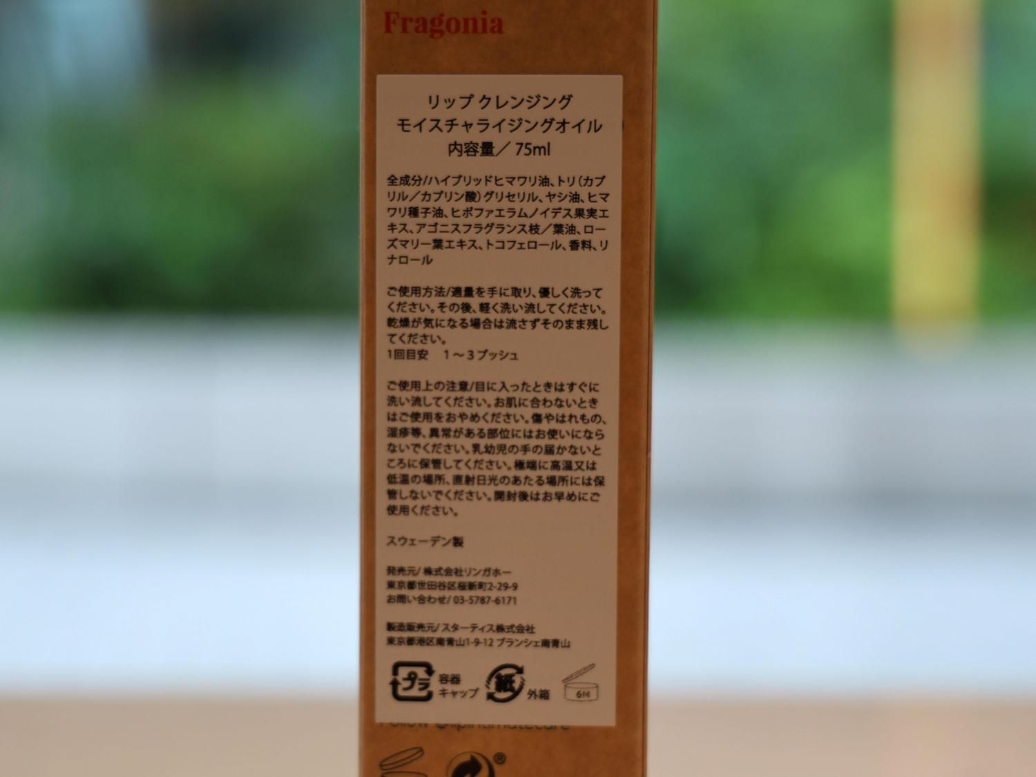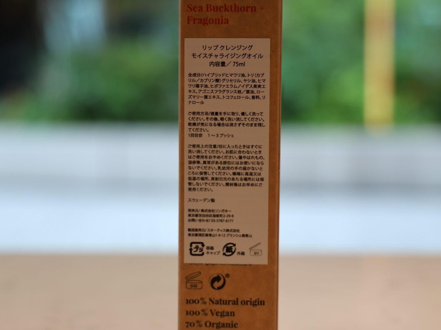 全成分:ハイブリッドヒマワリ油、トリ(カプリル酸/カプリン酸)グリセリル、ヤシ油、ヒマワリ種子油、ヒポファエラムノイデス果実エキス、アゴニスフラグランス枝/葉油、ローズマリー葉油エキス、トコフェロール、香料、リナロール