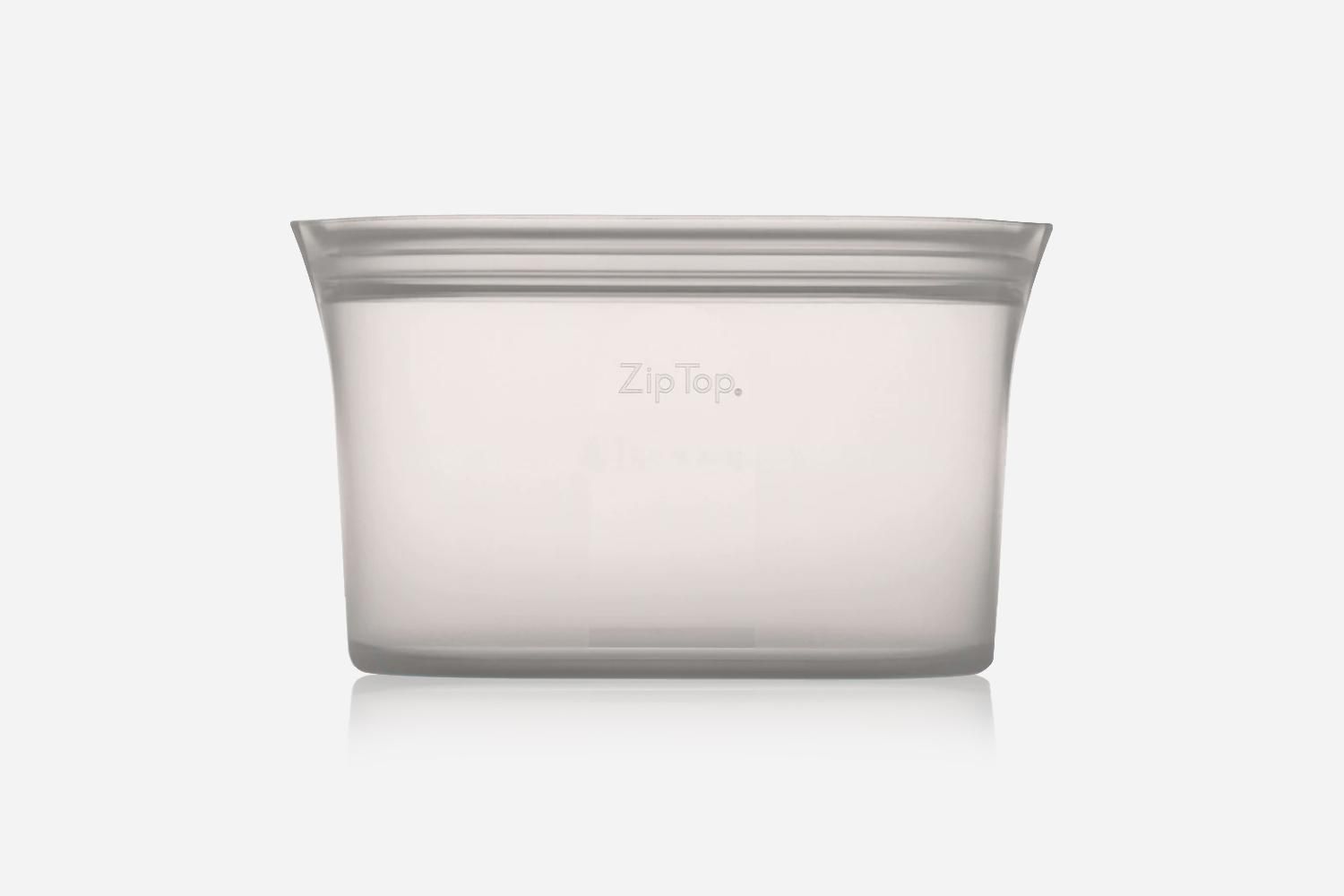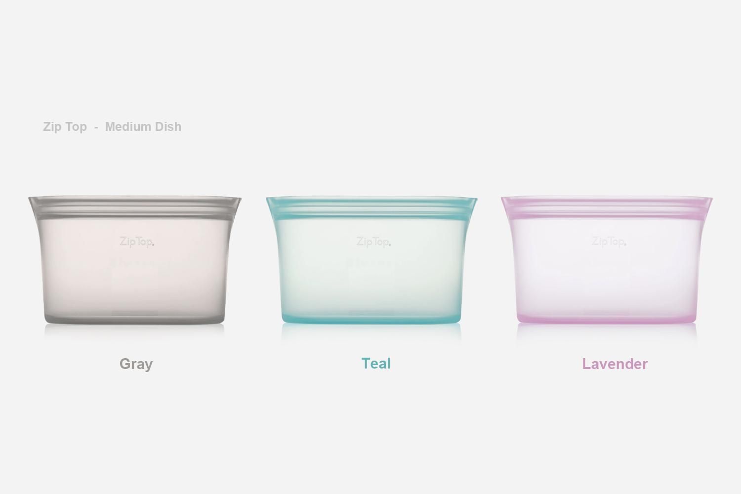 繰り返し使えるフタのいらないZIPTOP(ジップトップ)のジップ式フードコンテナ。食べ物を入れるのに最適な形状にデザインされた「ディッシュ」。