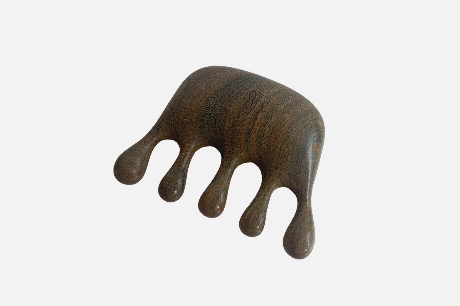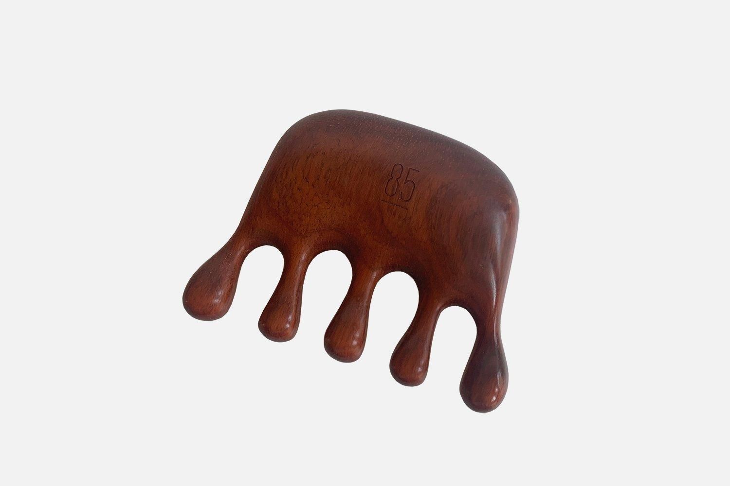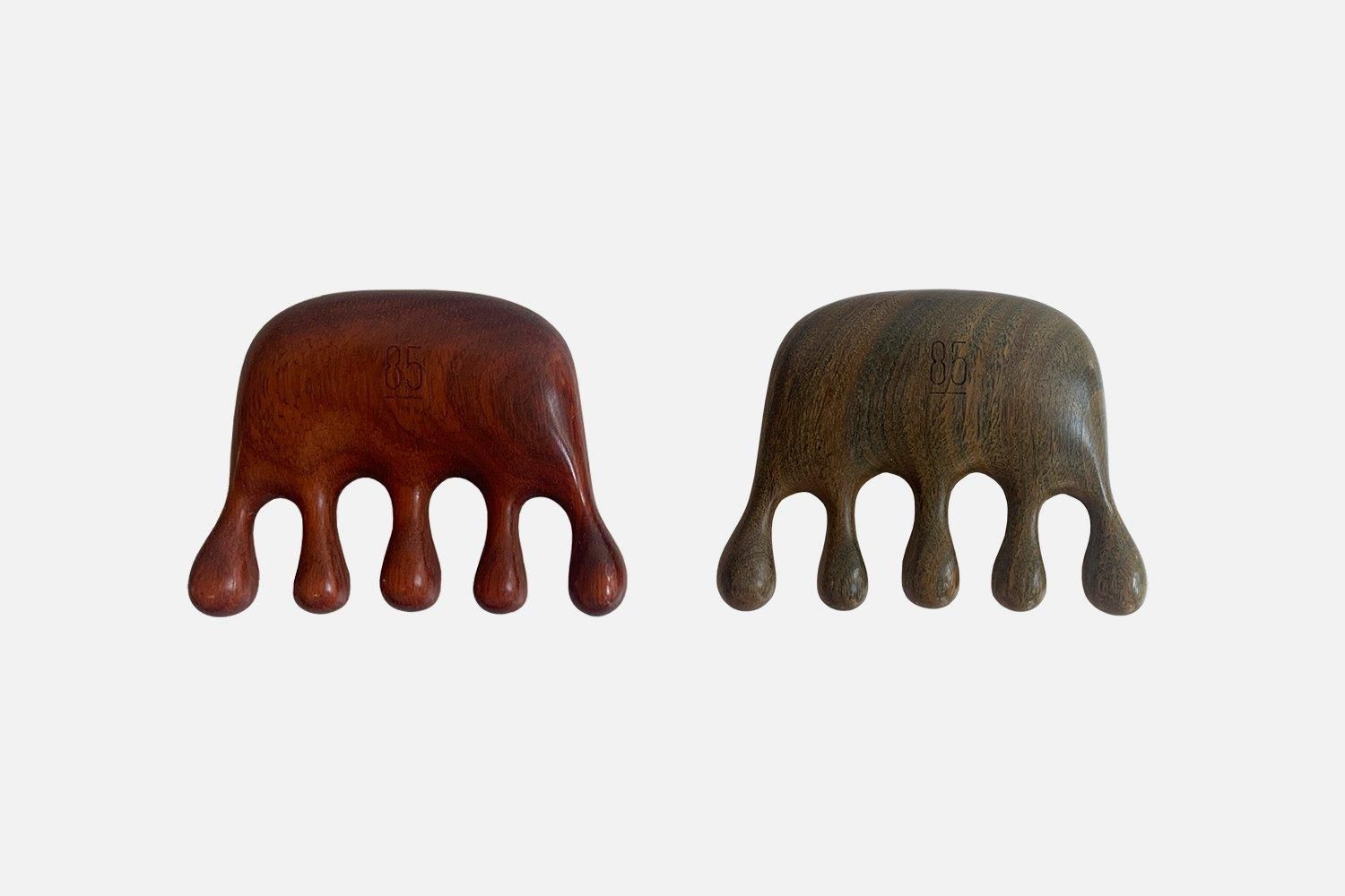 使っている木材は、表面が滑らかでマッサージに最適なサンダルウッド(白檀)です。さわやかな甘い香りを持つ貴重な香木としても知られ、蒸留して取られる精油は爽快感を与え、精神的なストレスや不安症などを和らげる効果もあると古くから言われています。インドの伝統的医学アーユルヴェーダでは心身全体を冷まして鎮める作用があるとされ循環器・消化器・呼吸器・神経系すべてに作用を及ぼすと考えられています。