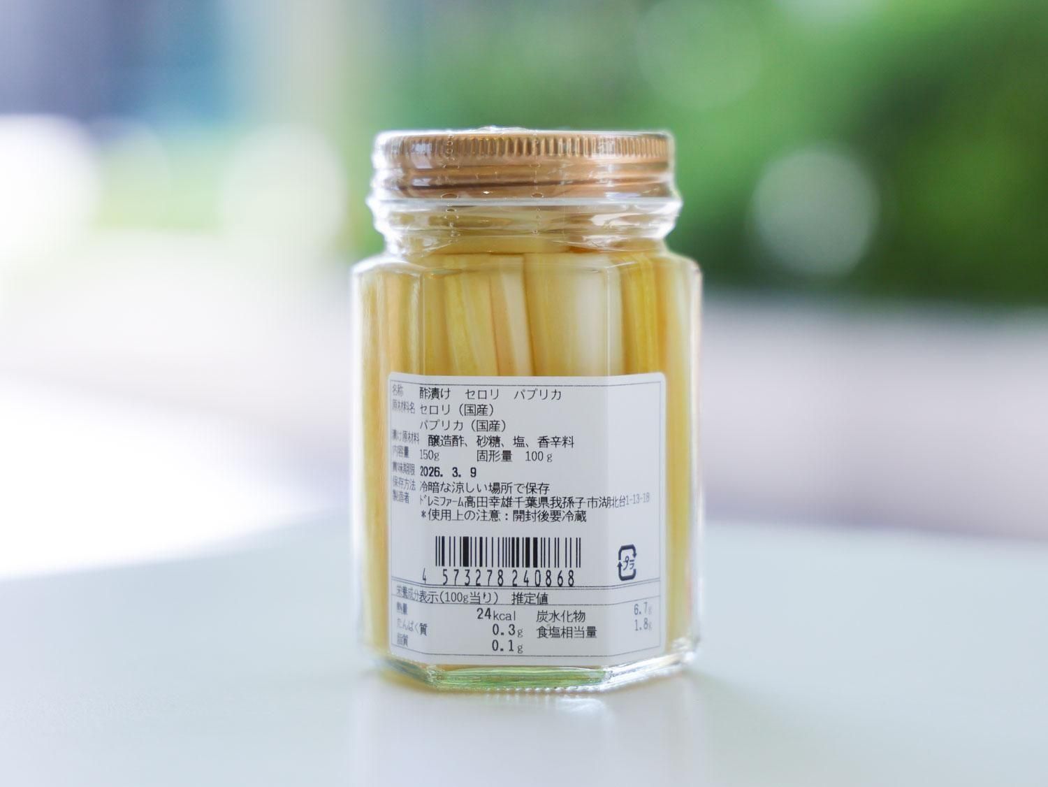 原材料名:セロリ(国産) パプリカ(国産) 醸造酢 砂糖 塩 香辛料