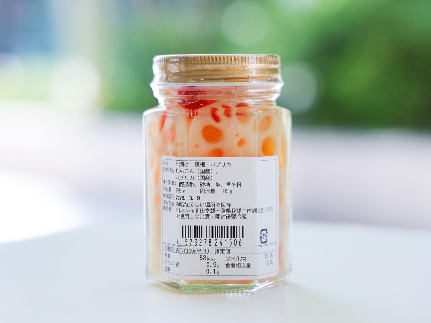 原材料名:蓮根(国産) パプリカ(国産) 醸造酢 砂糖 塩 香辛料