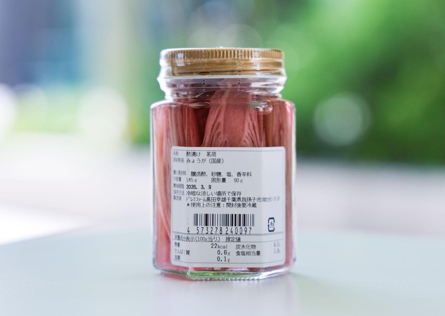 原材料名:みょうが(国産) 醸造酢 砂糖 塩 香辛料