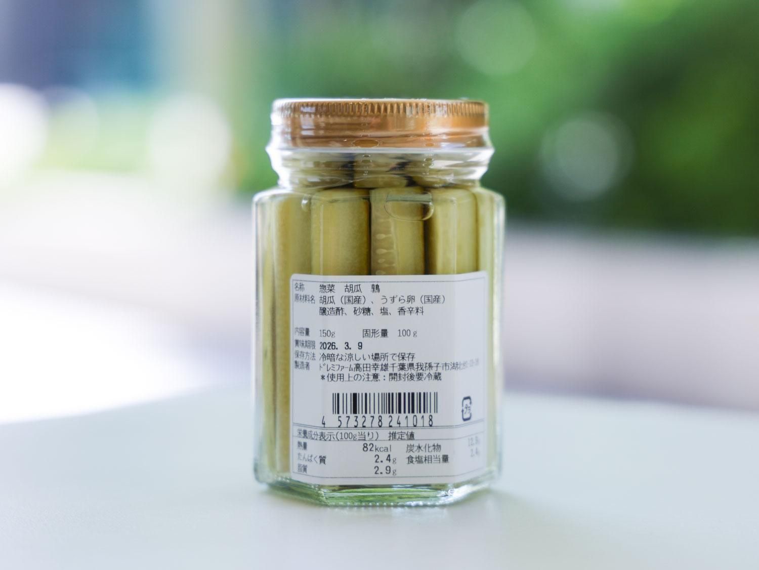 原材料名:うずら卵(国産) きゅうり(国産) 醸造酢 砂糖 塩 香辛料