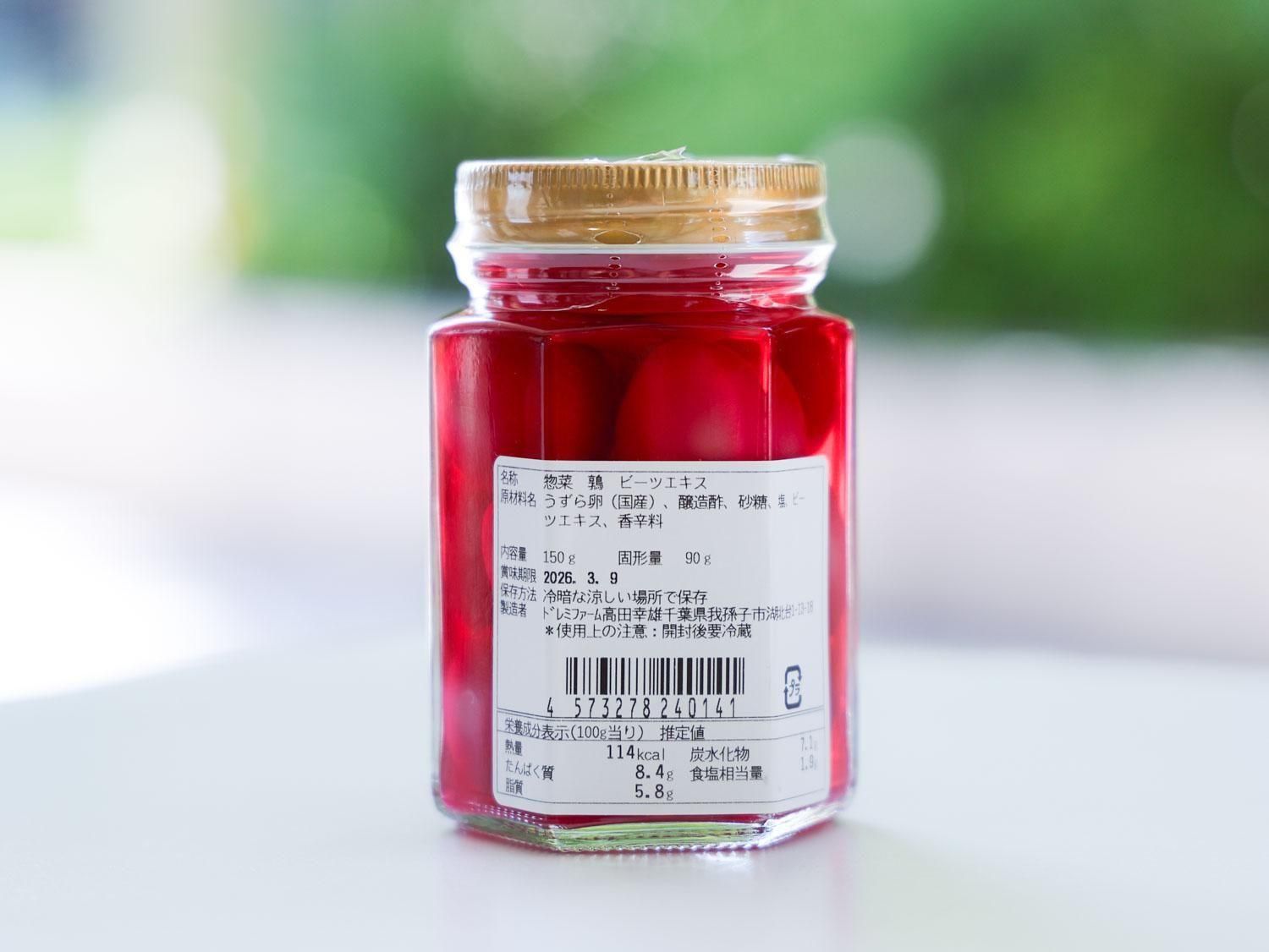 原材料名:うずら卵(国産) ビーツエキス(国産) 醸造酢 砂糖 塩 香辛料