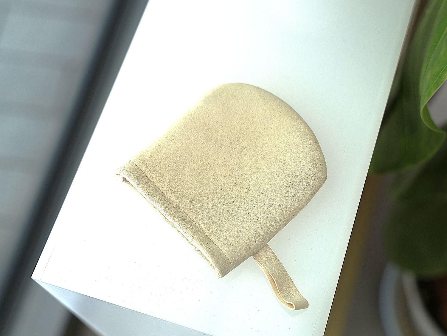 鹿革は水分を含ませると、しっとりプルンとした質感になり、天然繊維が毛穴の奥の汚れ