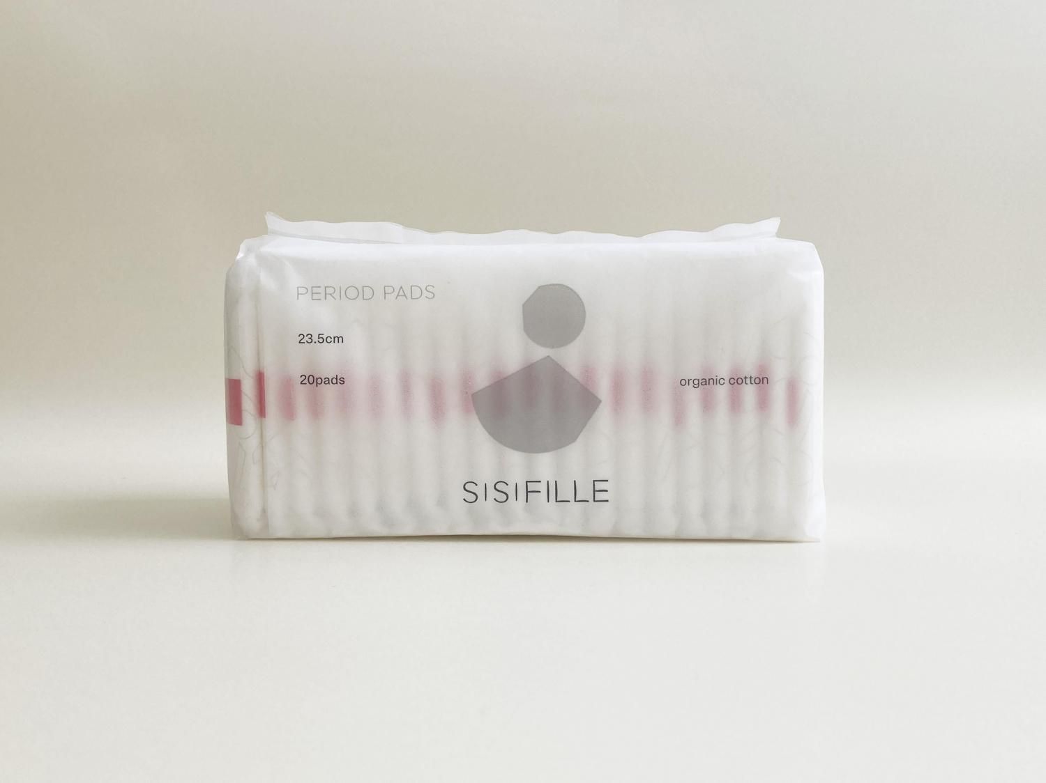 オーガニックコットンの生理用ナプキン 23.5cm 羽ありタイプ。